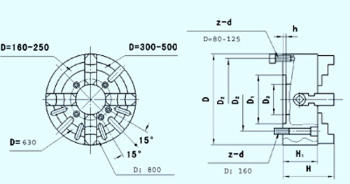 根據(jù)用戶(hù)需求,還可提供配帶分離爪(滑座和頂爪連接尺寸符合ISO3442)的四爪單動(dòng)卡盤(pán),型號(hào)為K72A、K72D、K72E。