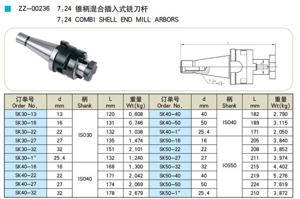 7:24錐柄混合插入式銑刀